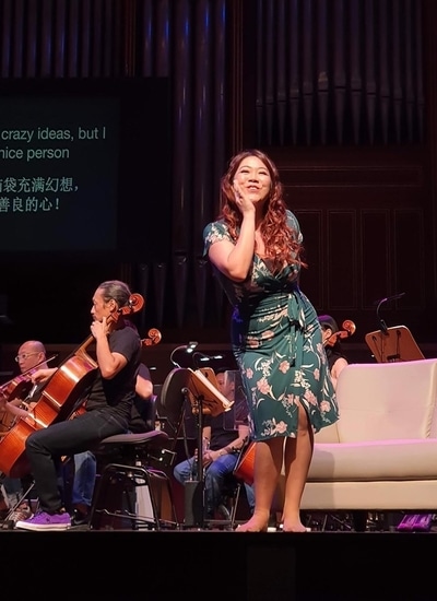 Taiwanese bass Ming-Mou Hsieh sings the titular role. His is an exceptionally likable Don Pasquale, even when spouting money-minded prejudices that Singaporeans might find uncannily familiar: “Rich marry poor become poor!” In the arias, his rich tones are unfortunately drowned out by the orchestra at many points. This Taiwanese singer handles his Singlish splendidly, however, whether it’s despairing “buay tahan ah!” or squawking “贱女人!” (an impolite Mandarin term for a floozy). It’s a local flavour of Don Pasquale’s materialism that’s highly recognizable – think your jolly, bigoted grandfather whom you still love.