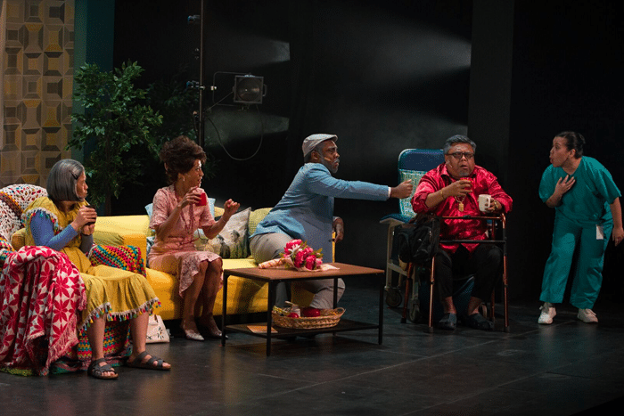 Rewritten for the Singapore audience by Benjamin ‘Mr Miyagi’ Lee and directed by Hossan Leong (read our interview with him here), Forever Young is not an easy production to process. It is not quite play and not quite musical, but a genre of Gedeon’s devising called “song drama”, which forgoes much plot, exposition, and dialogue in favour of a mash-up of ironic pop tunes. It starts off quietly in a barebones set, as Sister Sara (Candice De Rozario), the no-nonsense caretaker, slips into an empty residents lounge while whistling the Kill Bill tune and cleaning tables.