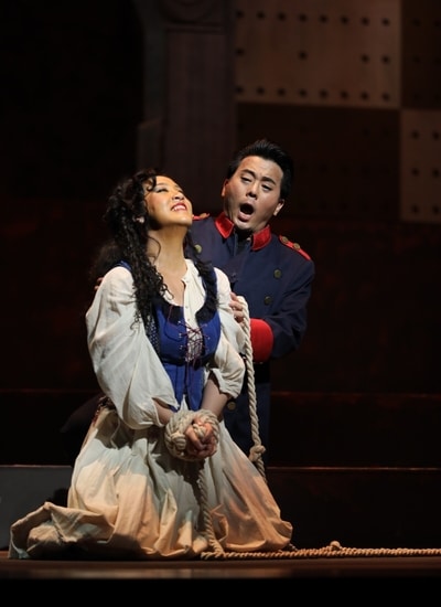 Singaporean tenor Jonathan Charles Tay dishes up a heavy dose of angst as the jilted Don José. Tay never convincingly sinks into the role of infatuated lover, but this sharpens the disturbing intensity of his inner turmoil, and his agonised vibrato as he pleads-threatens Carmen (C’est toi! C’est moi!) thrills the ear.