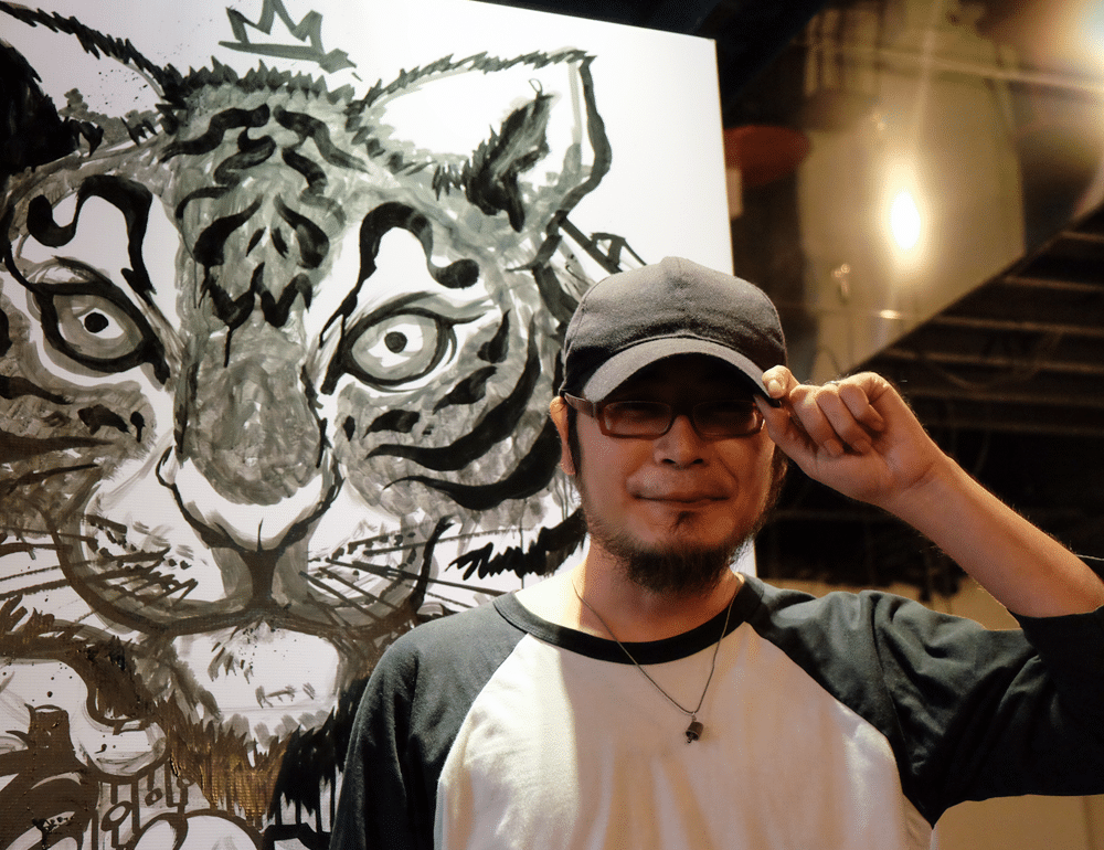 Over three hours, he laboriously works on his piece: an intimidating two-metre tiger painting that infuses elements from the proverbial monkey into the figure. Talking about his responses to his unique style, he says “every piece has its value and memorable story behind it, but in general it’s nice to see young children actually recognise a Chinese mythological hero.”