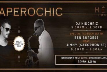 Opening act: DJ Kidchriz 5.30pm – 9.30pm Special tagteam set: Ben Burgess Jimmy Rougerie (Saxophonist) 9.30pm – 1.30am From 5.30pm...