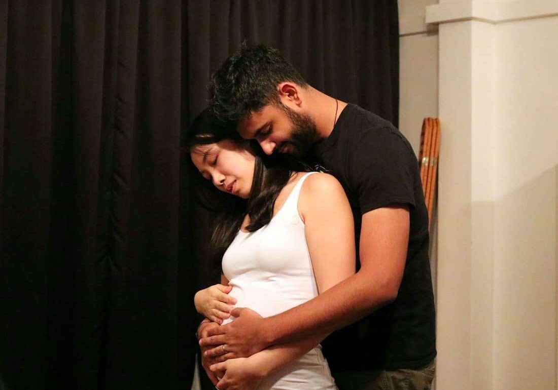 The play opens on a rosy scene of the expectant husband and wife in their living room, as they bicker playfully and break into spontaneous slow-dancing – every inch the couple in love. Tarun Satyakumar plays the joyful, positive Nick D’Cruz – an architect and devoted husband who already dreams of watching his favourite Barcelona football team with his son. His better half, Chiara Tan (Kimberley Kiew), is a sharp-witted literature lover and teacher, with a penchant for delving deeply into ideas. Their son is 23 weeks in the making – and it feels like their future couldn’t be brighter.