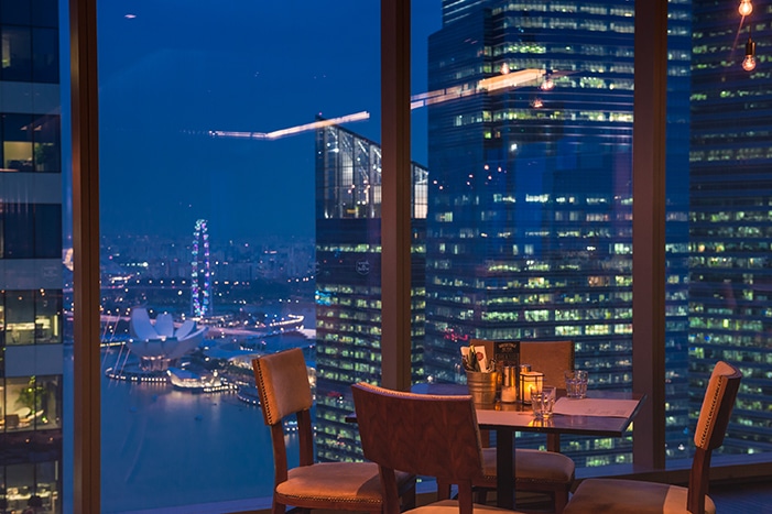 ME@OUE combines a spectacular view of the Marina Bay and with two smashing menus designed by Executive Chef Sam Chin. Encompassing dishes from the restaurant’s three distinct kitchens, the gastronomic – and very romantic – journey takes you through luxurious ingredients like Foie Gras (paired with yuzu chestnut puree and white miso), Spiny Rock Lobster with crispy spiced garlic, Sea Pheasant (turbot fish), and exclusive cuts of Kumamoto Beef. Of course, you have the option of pairing each course with wine or sake from Me@OUE’s impressive list – and that includes the seductive Lychee Rose dessert.