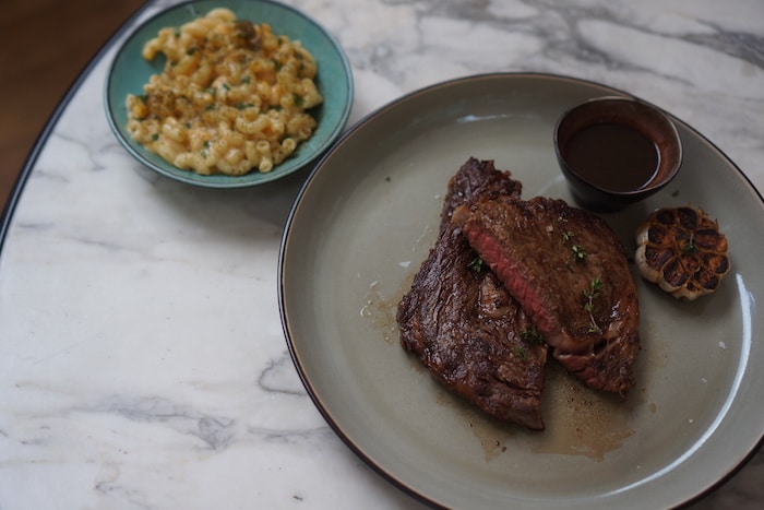 Mentaiko Mac & Cheese, 55-Day Dry Aged Grass Fed Ribeye