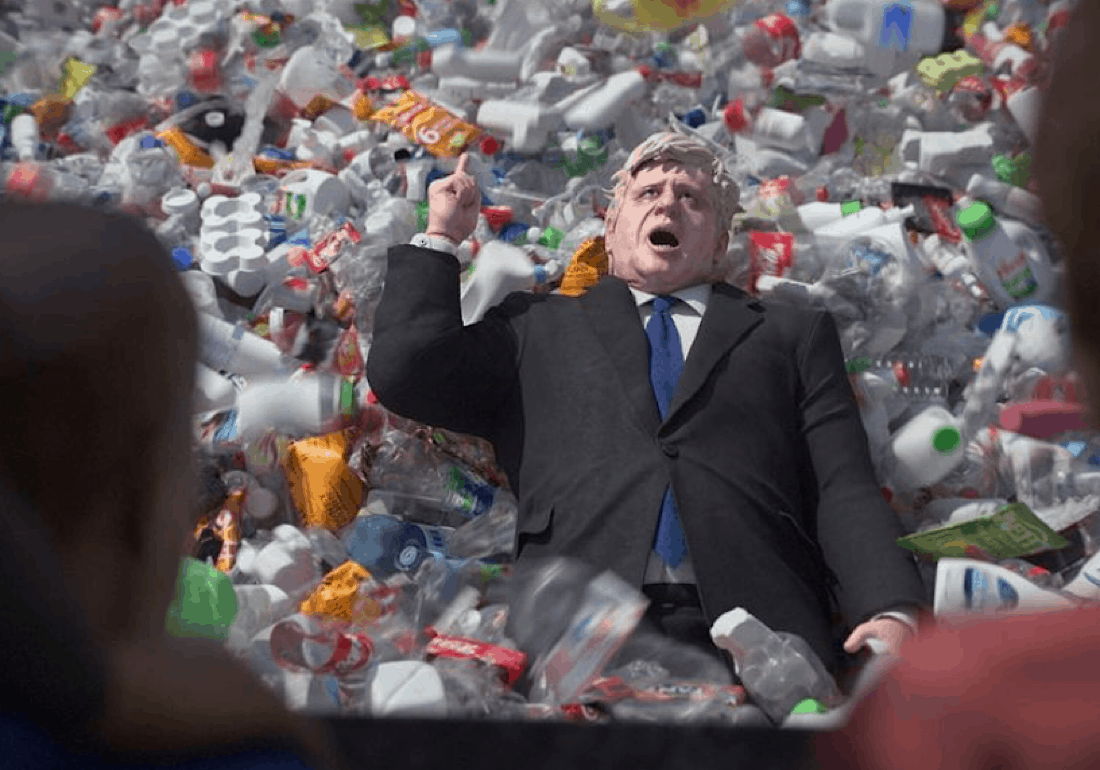 Greenpeace and Park Village Studios’ two minute film sees an animated Boris Johnson (voiced by Matt Forde and Jon Culshaw) declaring their efforts to reduce plastic pollution – using real quotes from both Boris Johnson and Michael Gove. Although not entirely baseless, it’s evident that many of these declarations of change are filled with empty promises. Until massive amounts of plastic waste begin to rain down around him, which is supposedly the amount of plastic that the UK has dumped on Turkey (it’s been a favourite destination for UK waste exports after the 2017 China ban).