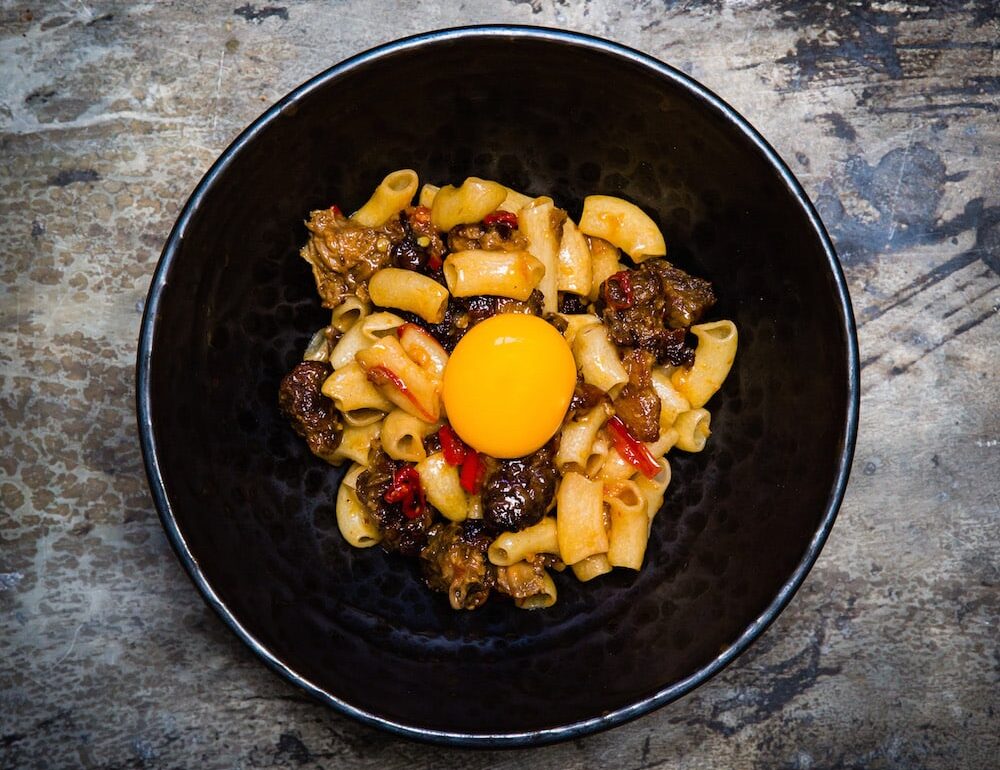 Top Image: Pig’s Head Macaroni with Egg Yolk by Nikki To.