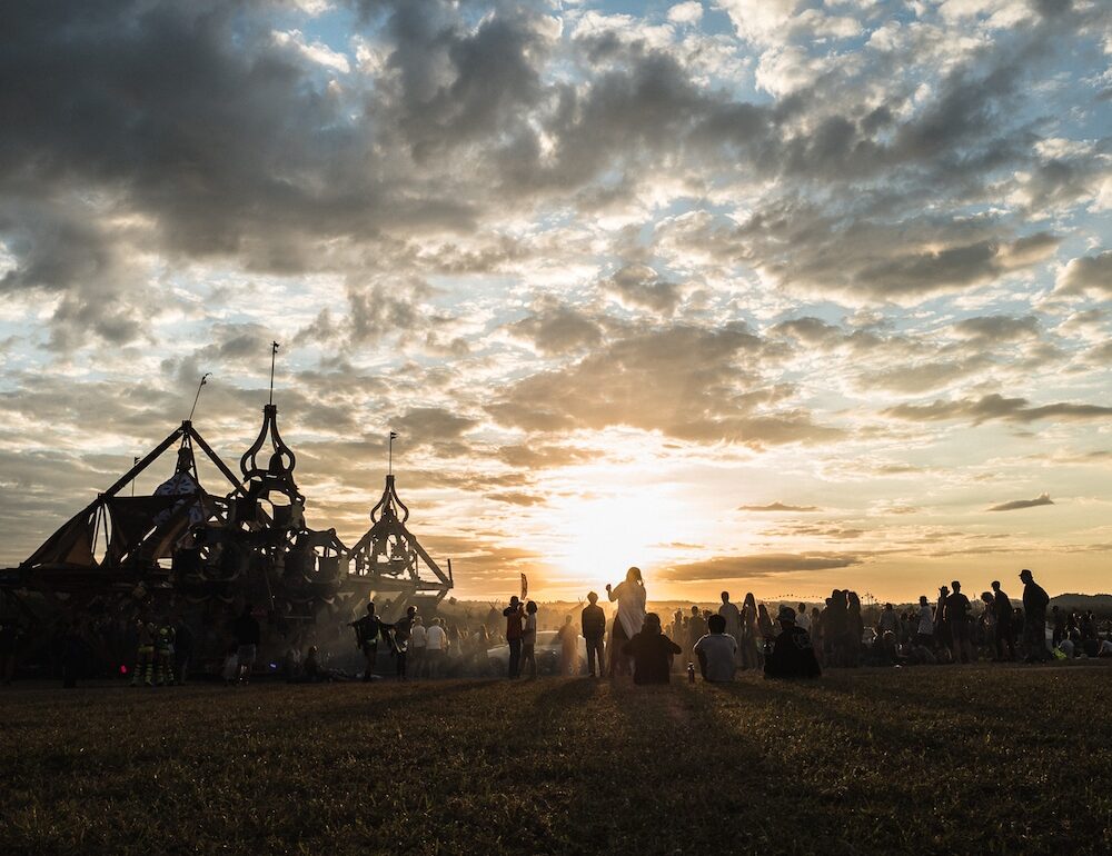 Daybreak is a couple of hours away, I find myself swept up in a wave of bleary eyed comrades, all headed in the same direction – the legendary Solar Stage. The brainchild of veteran Burning Man artist, Gregg Fleishman, this quirky pyramid-esque monument completely re-interprets the idea of a stage. The DJ console is nestled in the heart of the structure, surrounded by revellers dancing inside, around and above. Giant trampoline hammocks were an inspired addition to this year’s design. After the last six hours of thumping techno, Eduardo Castillo dropping Radiohead’s You Are All I Need is a welcome respite. Armed with a fruity Yadong cocktail, I find myself a cosy spot and await the coming sunrise.