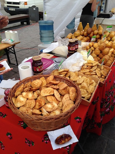 A common sight along the streets of Krakow is that of a man hawking a basket of highland cheese (also called Oscypeki cheese). These distinctively parched cheeses are made of sheep milk and smoked for weeks over a highlander bonfire, yielding a chewy, salty dairy product.