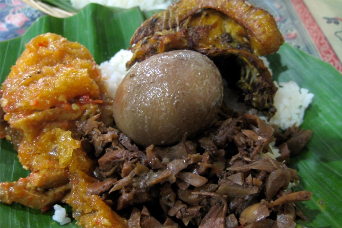 Yes, it’s nasi gudeg, the dish most synonymous with Yogyakarta. Some people love it, some hate it, but you can’t deny the novelty of young unripe jackfruit stewed for hours with palm sugar, coconut milk, teak leaf, and spices like garlic and coriander into a chutney of sorts. The gudeg is typically served with rice, tempeh, krecek (chewy beef skin that’s been cooked in chilli), and an egg that’s been braised in palm sugar. Get everything into one bite and it’ll be surely be a memorable experience. Many of the city’s best nasi gudeg eateries (from IDR25,000) are concentrated on Jalan Wijilan near the palace, including Gudeg Yu Djem and Gudeg Bu Lies.