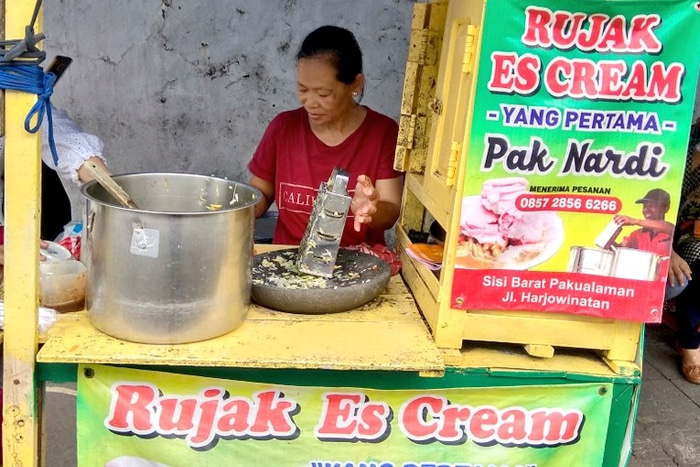 You’ve eaten rojak before in other Southeast Asian countries, but what about rojak ice cream? Rujak Es Krim Pak Nardi is one of the few such stalls (actually a wooden cart by the road) left in Jogja. Fresh fruits are spiced and drizzled with a sweet and sour sauce, then topped with homemade rojak ice cream (IDR6,000). If you’re daring enough, you can even ask for a spoon of sambal — there’s nothing like a sweet, sour, spicy, and cold treat all at once to remind you that you’re in Indonesia.
