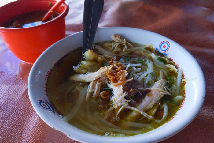 Noodle soups are a staple in Yogyakarta, and it’s obvious why — they’re comforting, tasty, and cheap (from IDR10,000). And the reigning dish? It’s soto ayam (literally “chicken soup”, a popular breakfast item that looks deceivingly ordinary. The broth is clear and light, but there’s plenty of savouriness within. There is thin vermicelli, tender shredded chicken, sliced cabbage, fried shallots, and the secret ingredient: little balls of puffy cassava that add a sweet kick. While many locals flock to the legendary Soto Ayam Kampung Pak Dalbe near the airport, we also love Soto Ayam Lenthok Pak Gareng closer to the city center, right in front of the train station.